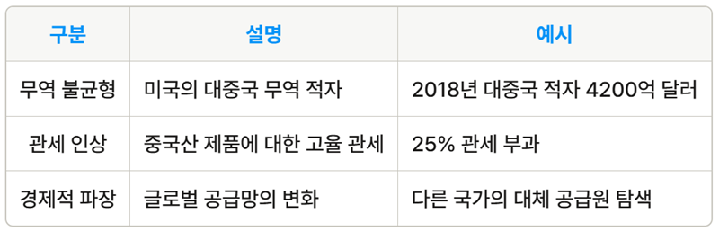 트럼프 정부는 중국과의 무역 불균형 문제를 심각하게 인식하고, 이를 해결하기 위한 방안으로 관세 인상을 선택했습니다.