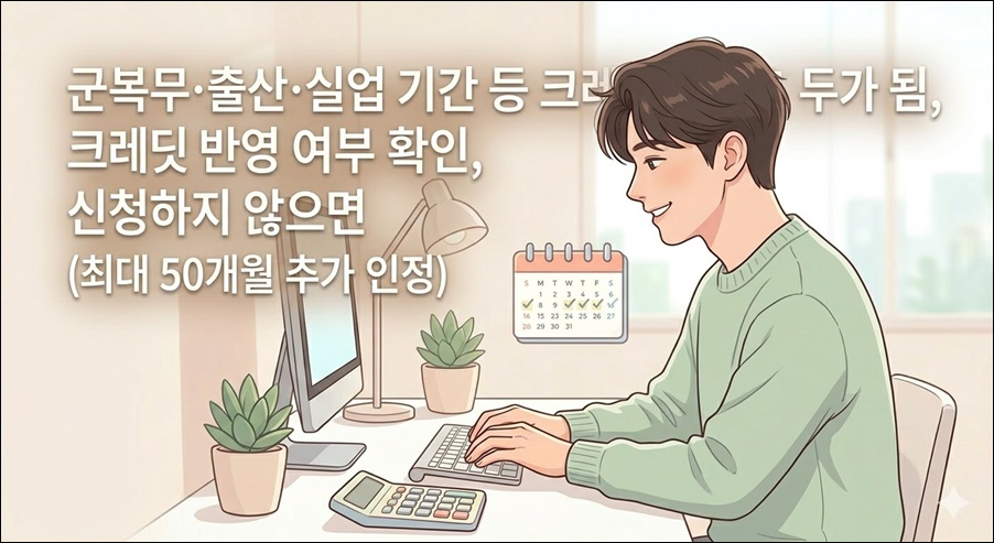 - 군복무·출산·실업 기간 등 크레딧 반영 여부 확인, 신청하지 않으면 자동 적용 안 됨 (최대 50개월 추가 인정)