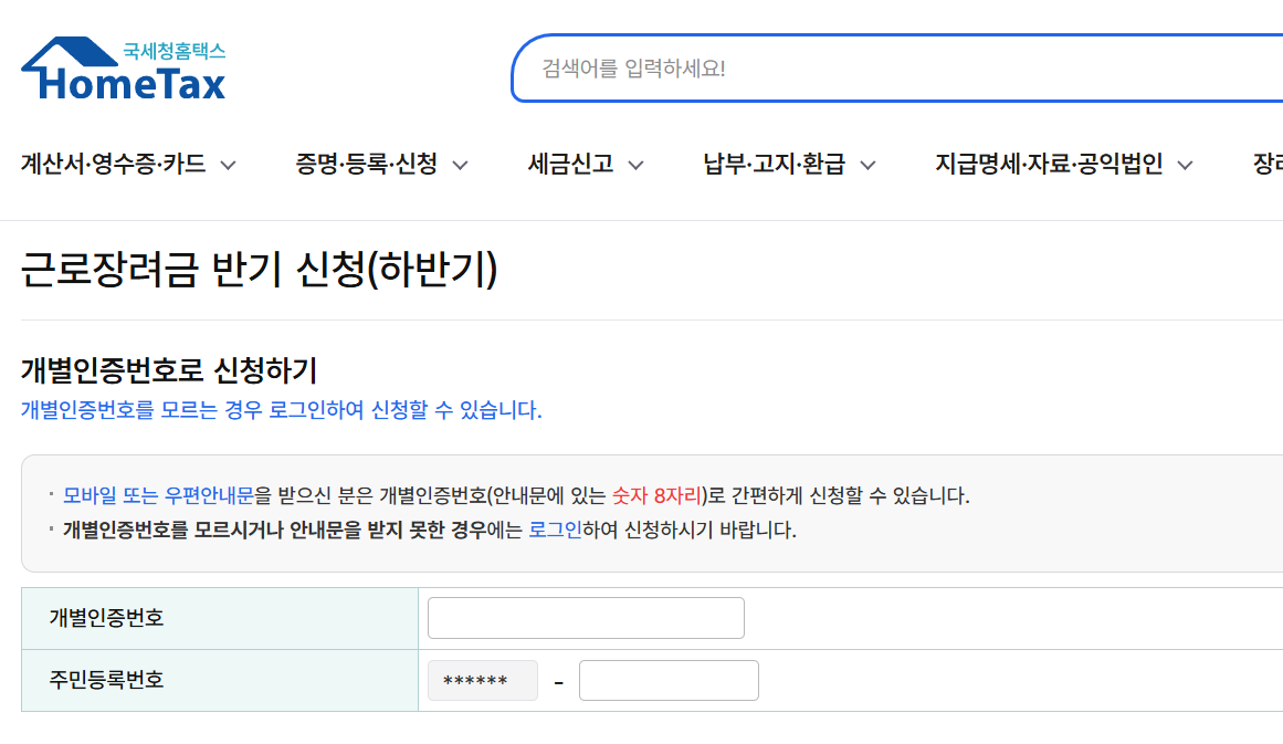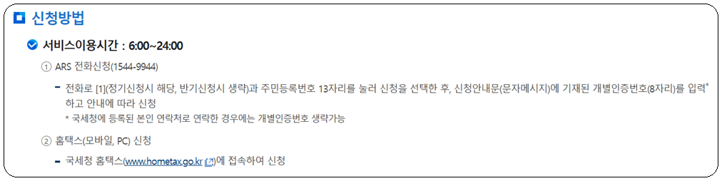 (2) 반기신청: 하반기 소득 매년 3월 1일부터 17일까지