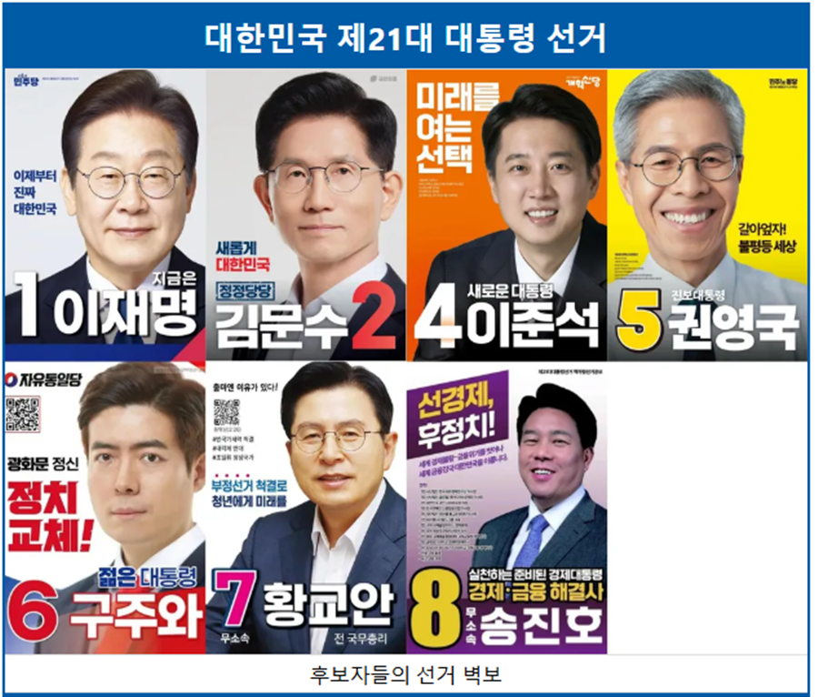 대통령 선거가 코앞으로 다가오면서 후보들의 움직임이 더욱 뜨거워지고 있습니다. 당신의 한 표가 대한민국의 다음 5년을 결정합니다.