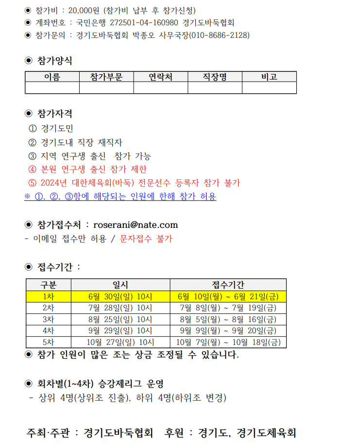 ▶경기도 바둑협회 주최 주관, 제공하는 바둑대회 참가 신청 방법이 하단에 있으므로 참조하세요.