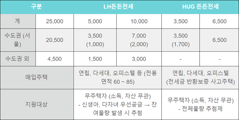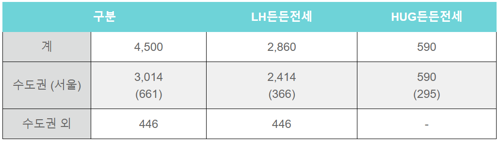 국토교통부는 2024년부터 2025년까지 2년 동안 든든전세주택을 총 25,000호 공급할 계획입니다. 이로 인해 더 많은 무주택자들이 안정적인 주거 환경을 누릴 수 있을 것으로 기대됩니다.