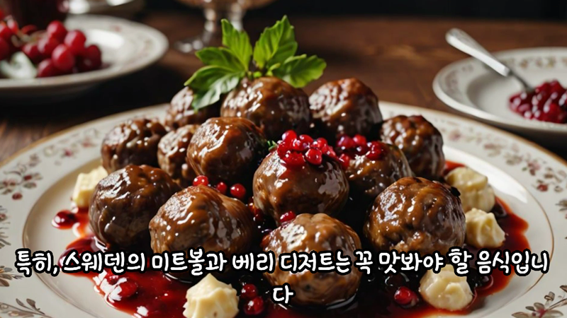 또한, 스웨덴의 전통 음식과 문화 체험은 여행의 또 다른 즐거움입니다. 특히, 스웨덴의 미트볼과 베리 디저트는 꼭 맛봐야 할 음식입니다. 🌍✨