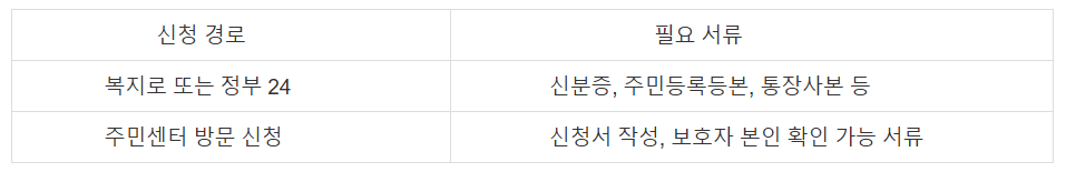 신청은 아이가 태어난 날을 포함하여 60일 이내에 신청해야 소급 적용받을 수 있으니 출생 후 바로 주민센터에 방문하거나 복지로 홈페이지를 통해 온라인으로 신청하는 것이 가장 좋습니다.