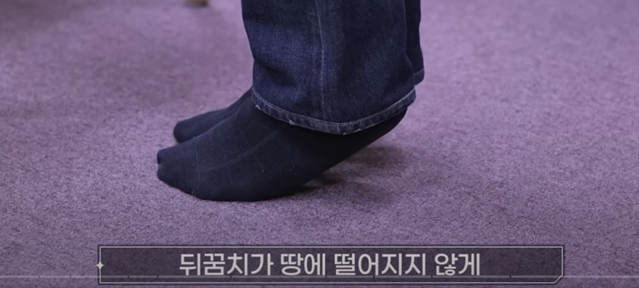 - 발뒤꿈치 들기 테스트: 발뒤꿈치를 들고 20초 동안 버틸 수 있나요? 종아리 근육과 발의 안정성을 확인하는 테스트입니다.