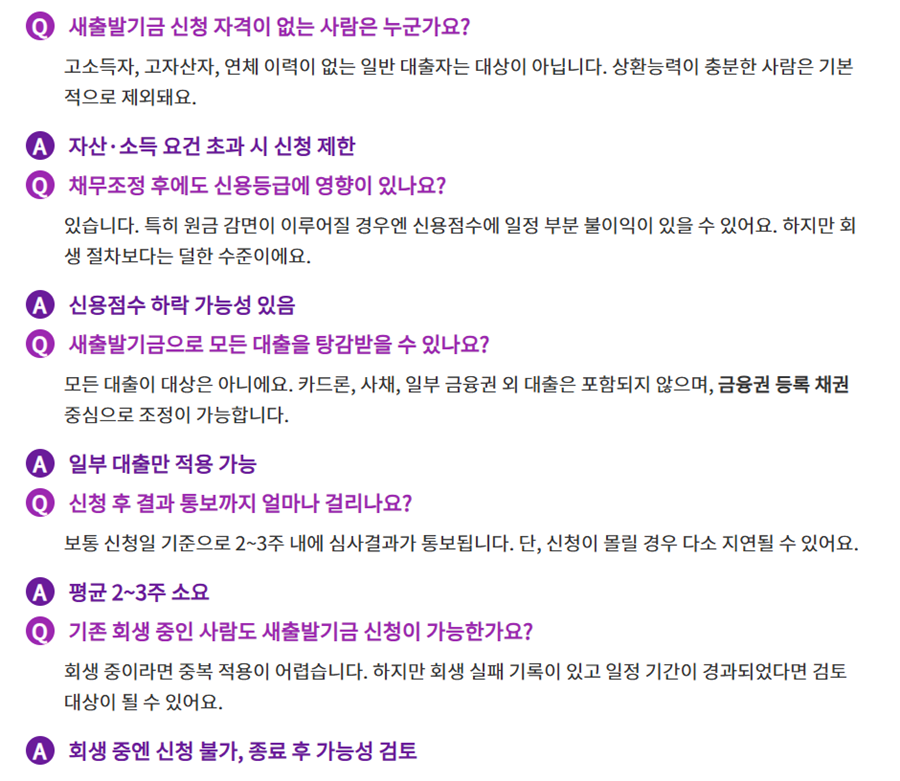 - 상환 기간 연장: 최장 20년까지 상환 기간이 늘어나 재기 준비에 여유를 줍니다.