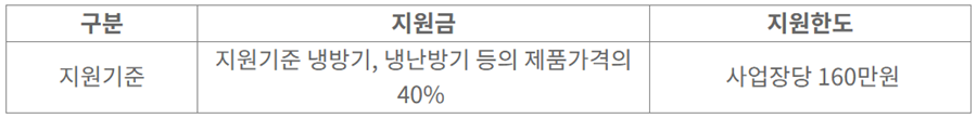 마지막으로, 지원 대상 품목인 냉난방기를 설치하거나 교체할 계획이 있는 경우에 해당해야 합니다. 또한, 사업자 등록증에 기재된 사업장이 실제로 운영되고 있어야 지원 신청이 가능합니다.