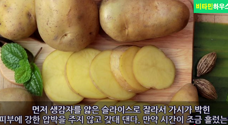 두 번째는 감자 조각을 활용하는 것입니다. 생감자를 얇게 썰어 가시가 박힌 부위에 올려놓고 압박을 주지 않은 상태로 잠시 두면 가시가 올라오기도 합니다.