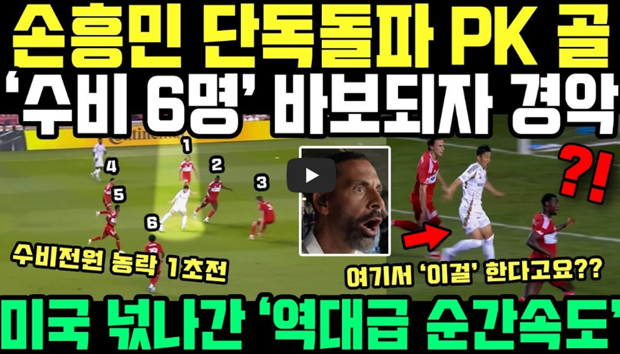 손흥민 선수의 '전설적인 질주'에 가장 놀란 것은 바로 미국 해설진이었습니다. 경기를 중계하던 해설진은 손흥민 선수의 놀라운 돌파력에 연신 감탄사를 쏟아냈습니다. 그들은 "손흥민 한 명을 상대로 6명이 막지 못했다", "이건 정말 믿기지 않는 스피드다"라며 경악을 금치 못했습니다.