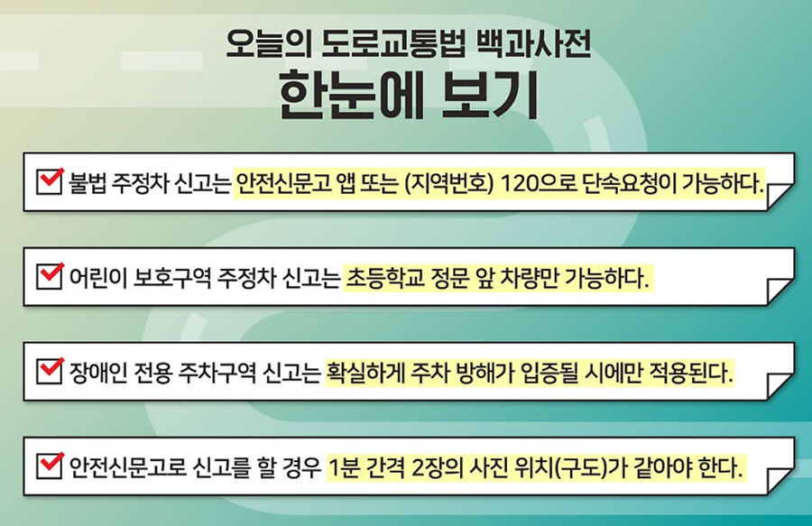 모든 불법 주차를 신고할 수 있는 것은 아닙니다. 안전신문고 앱을 통해 신고할 수 있는 주요 대상은 다음과 같습니다.