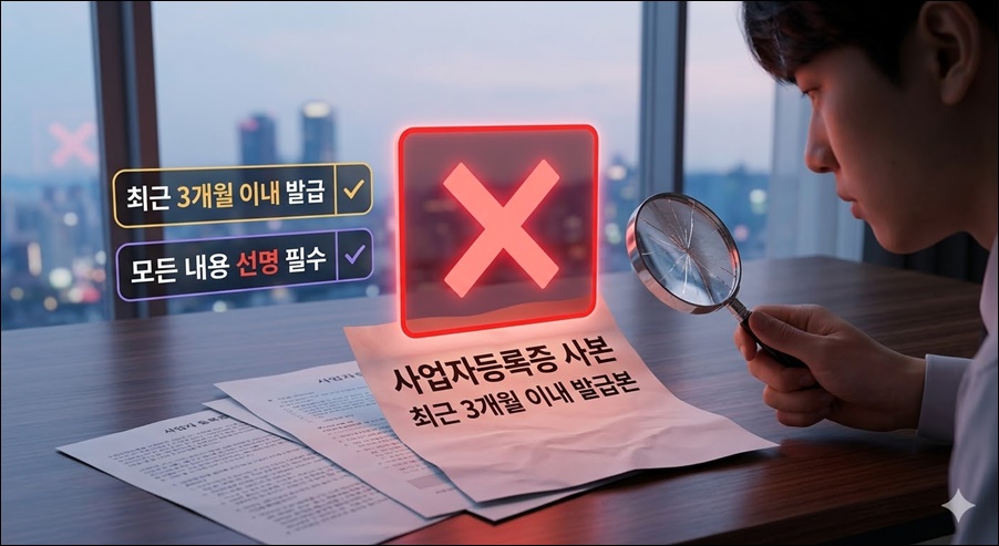 - 사업자등록증 사본 - 최근 3개월 이내 발급본, 휴대폰으로 찍은 사진도 가능하지만 모든 내용이 선명해야 함