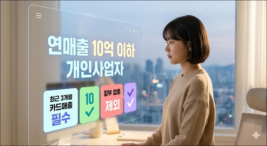 요약: 연매출 10억 이하 개인사업자, 최근 3개월 카드매출 필수, 일부 업종 제외
