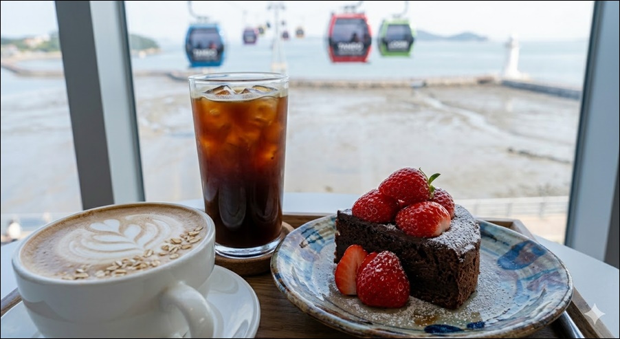탄도항 바로 앞 '선장님 횟집'은 자연산 우럭회와 칼국수 세트가 4만 원대로 가성비가 뛰어납니다. 케이블카에서 도보 5분 거리 '바다향 카페'는 오션뷰와 함께 수제 케이크를 즐길 수 있어 데이트 마무리 장소로 완벽합니다.