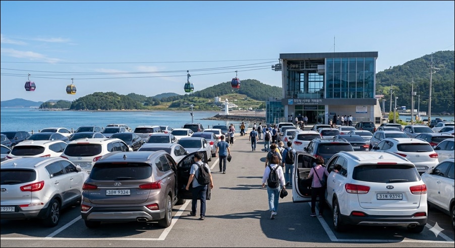 - 오전 9시 30분 전 도착하면 주차장 여유, 케이블카 첫 운행 이용 가능