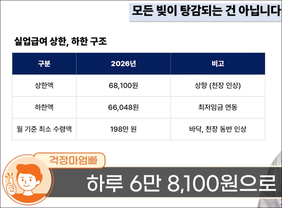 2026 실업급여 상한액 하한액 월 198만원 인상 금액
