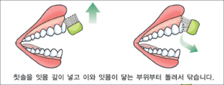1) 45도 각도 칫솔 위치