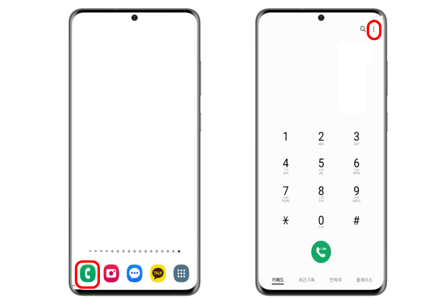 1) 전화 앱 실행 → 점 세 개(⋮) → 설정