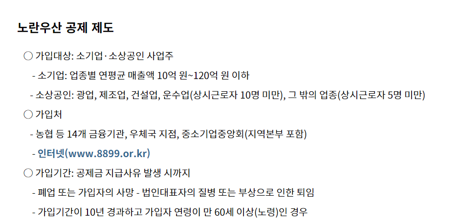 - 위험 대비: 사업 운영 중 예상치 못한 위험이나 손실이 발생할 경우, 공제금을 통해 경제적인 안정을 도모할 수 있습니다. 이러한 지원은 갑작스러운 상황에서도 사업을 유지할 수 있는 중요한 기초가 되어 주며, 경영자의 심리적 부담을 덜어줍니다.