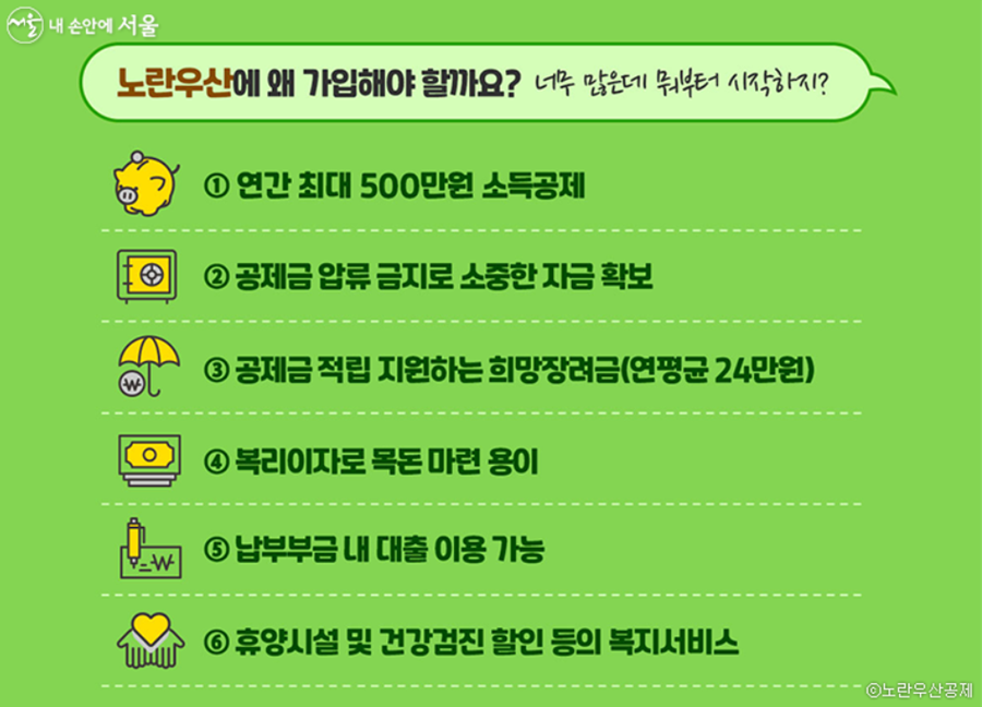 - 노후 대비: 소상공인과 자영업자가 일정 금액을 납입하면, 퇴직 시 일시금이나 연금 형태로 받을 수 있습니다. 이를 통해 안정적인 노후 생활을 준비할 수 있으며, 예기치 않은 상황에서도 일정한 소득을 보장받을 수 있습니다.