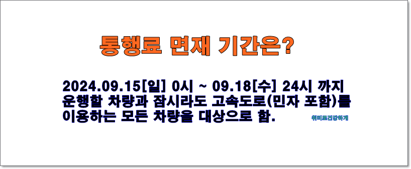 2024 추석 명절 연휴 고속도로 통행료 면제 기간